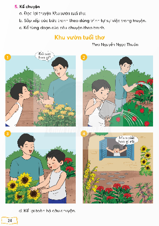 Quy trình dạy bài đọc-kể “Khu vườn tuổi thơ” (trích theo Nguyễn Ngọc Thuần) ở lớp 2 theo hướng phát triển phẩm chất và năng lực, đảm bảo đạt mức độ cao nhất.